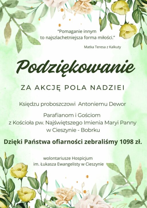 Niech każdy dzień przynosi satysfakcję z niesienia pomocy, a uśmiech i wdzięczność osób, którym udzielacie pomoc, będą największą nagrodą. Życzymy wielu sił, zdrowia, wytrwałości oraz nieustającej wiary w sens tego, co robicie.