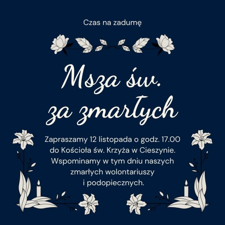 Pamiętamy zawsze o tych, którzy odeszli ku ich pamięci 1 i 2 listopada zapaliliśmy znicze i odwiedziliśmy ich groby. Następnie 12 listopada będziemy uczestniczyli we Mszy św. za naszych zmarłych wolontariuszy i podopiecznych. Zapraszamy do wspólnej modlitwy.